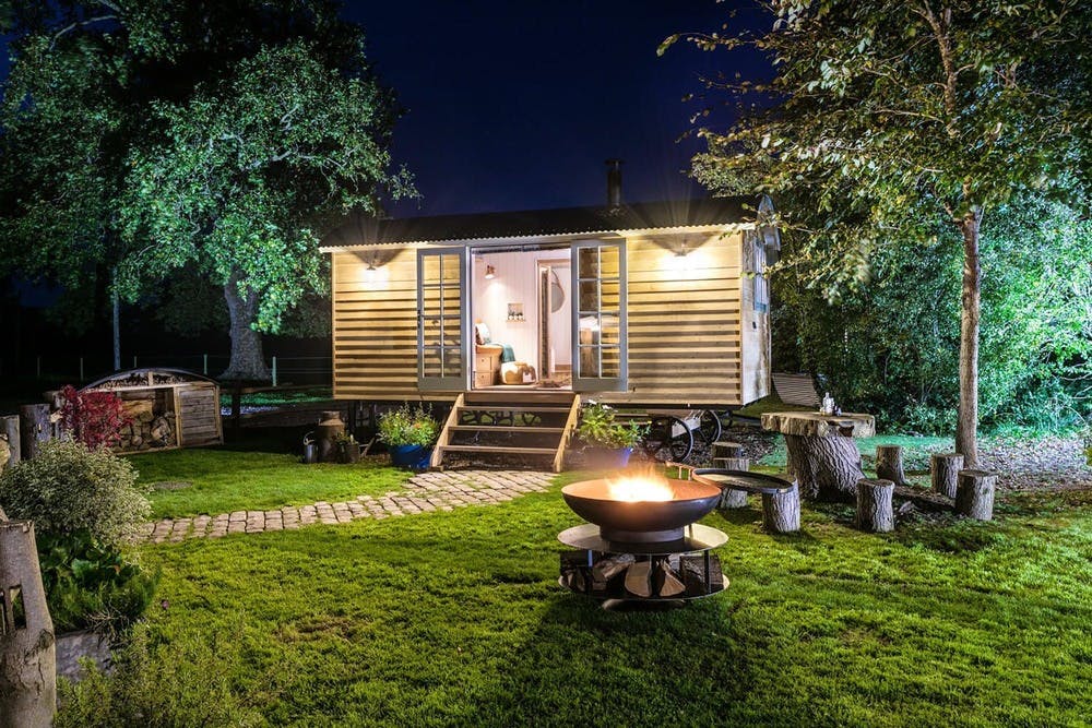 Just outside of each of these luxury shepherds huts in Devon there’s an electric hot tub, a firepit with grill, and vintage style garden furniture. Bu these huts aren’t just for summer, they are a delight all through the year for holidays, short breaks, weekends away, and romantic stays. On warm spring days leave the door open, sit on the steps and idle the time away enjoying the fresh country air and those gorgeous views; slip into the silky warm waters of the hot tub and just completely let go.
