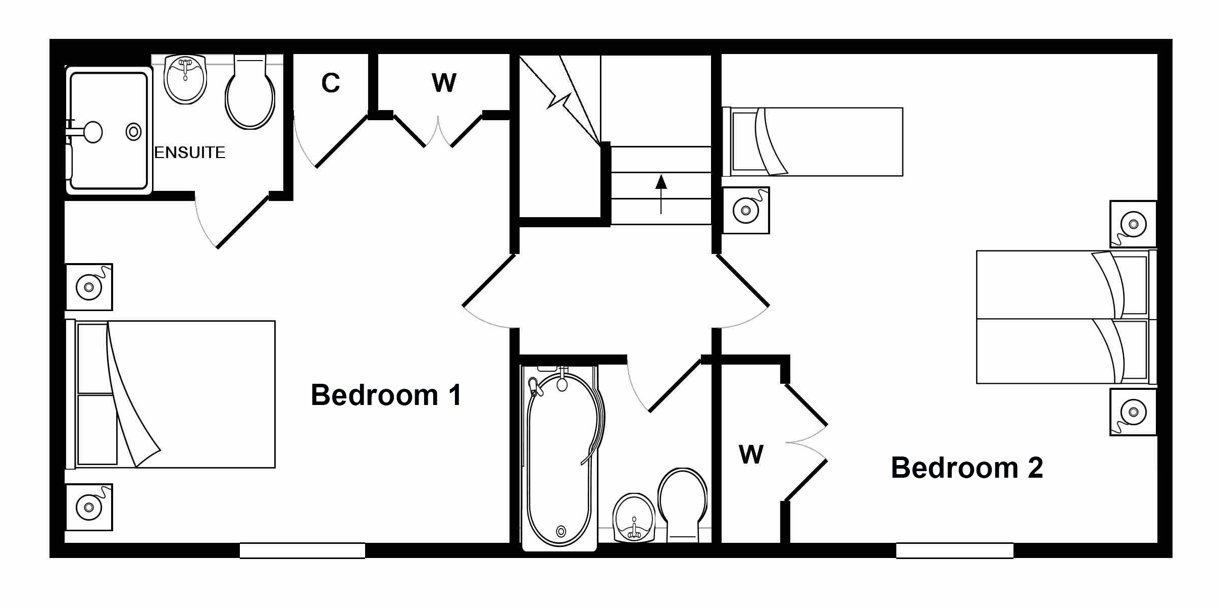 A first floor room that can have a super king and a single bed, or 3 singles. Next to it is a bathroom with a P bath and overhead shower Sleeps 3.